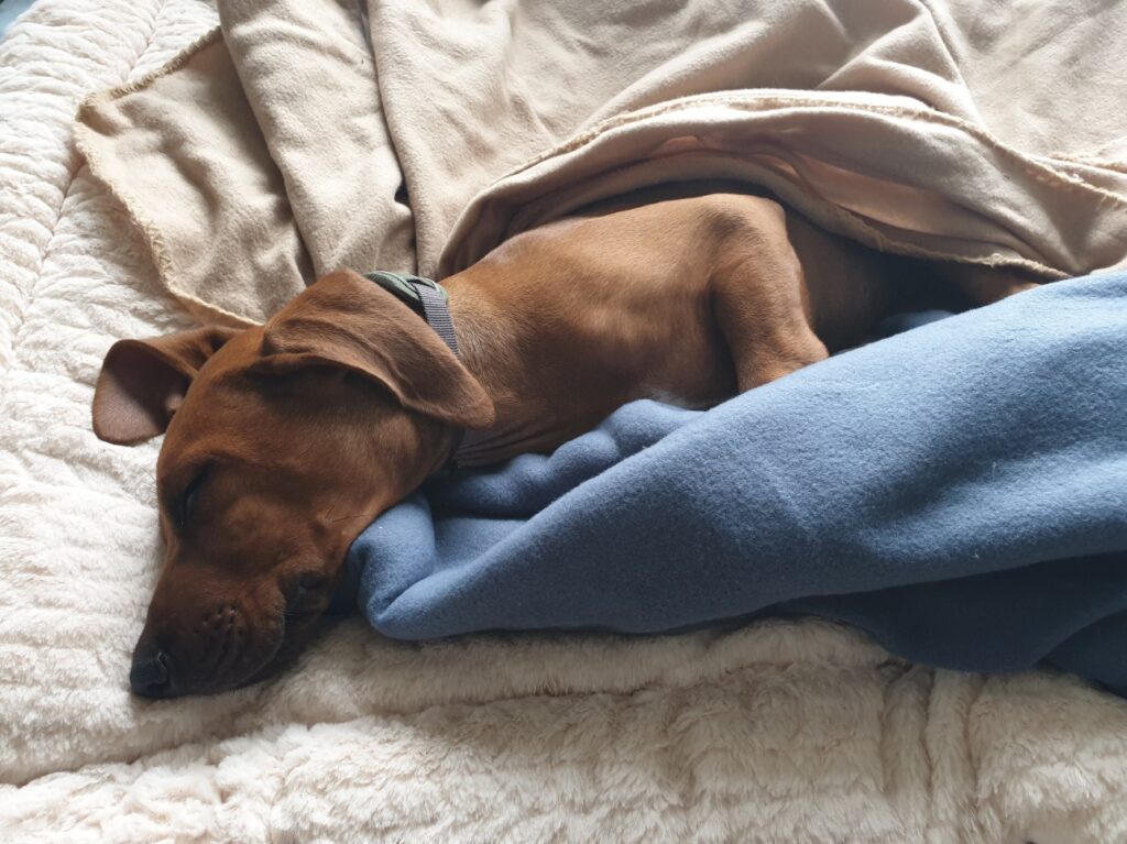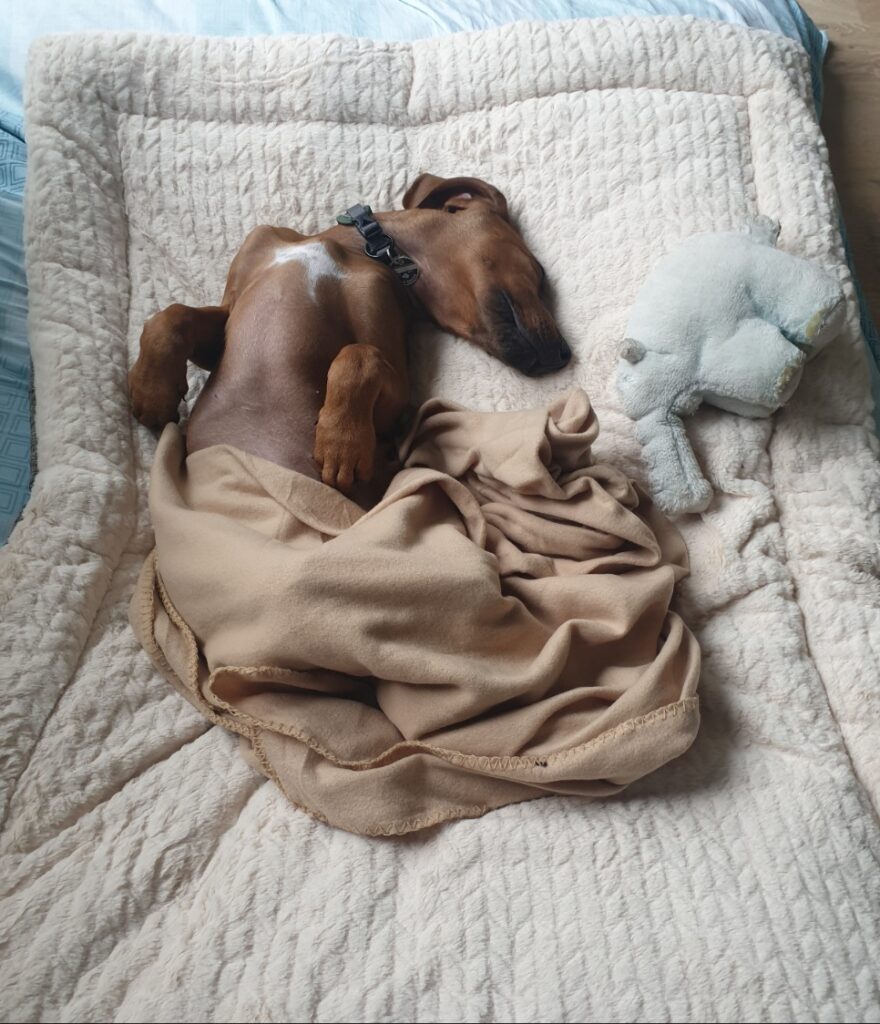 .... und natürlich schlafen! Ganz wichtig! Nur wer viel übt wird ein Meister der kreativen Schlafpositionen!