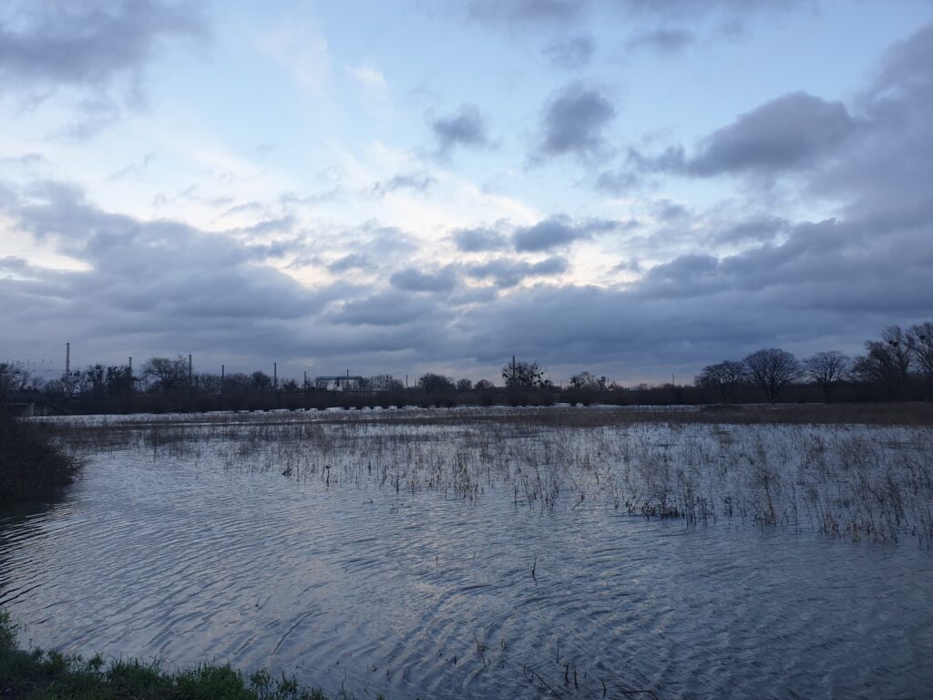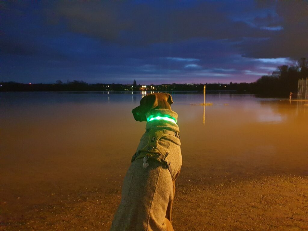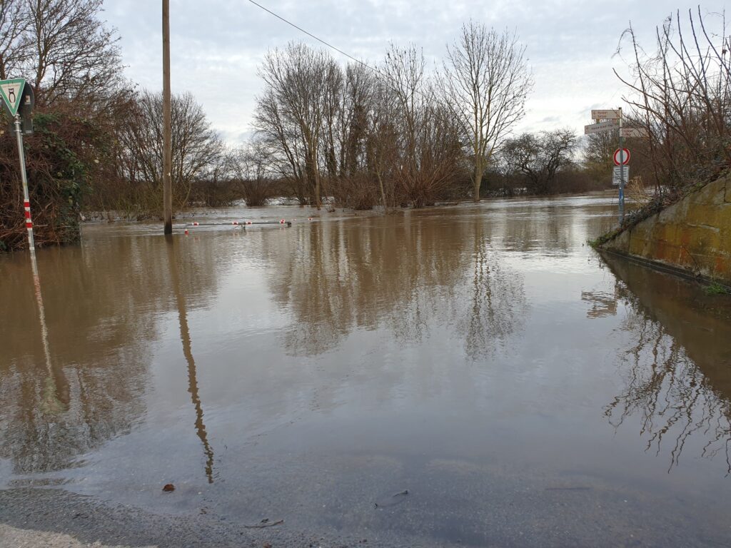 Dann, weil wir ja zwischen den Jahren eh sonst nix vor hatten, war hier plötzlich überall Hochwasser! Manche Straßen wurden gesperrt und viele Wiesen standen unter Wasser, auch meine Hundewiese!!! Skandal! Schaut mal: