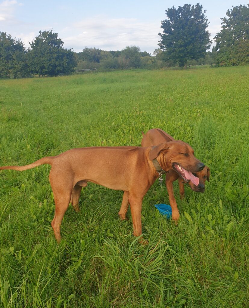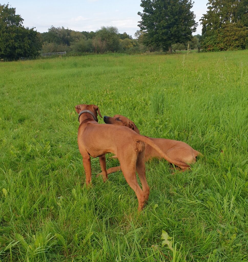 Huiii Leute, ich habe da jemanden kennengelernt und ich glaube ... ich bin ein so ein bisschen verliebt :-) Sie ist ein Ridgeback-Mädchen, ca. ein halbes Jahr jünger als ich und sie heißt Mabel :-) Ist das nicht ein wunderschöner Name? Und nicht nur der Name ist wunderschön, nee, auch die Mabel ist eine ganz ganz Süße und meeeega lieb und wir können schon echt toll zusammen spielen und viel Quatsch machen und rumliegen und so, obwohl wir gerade erst unser zweites Date hatten!