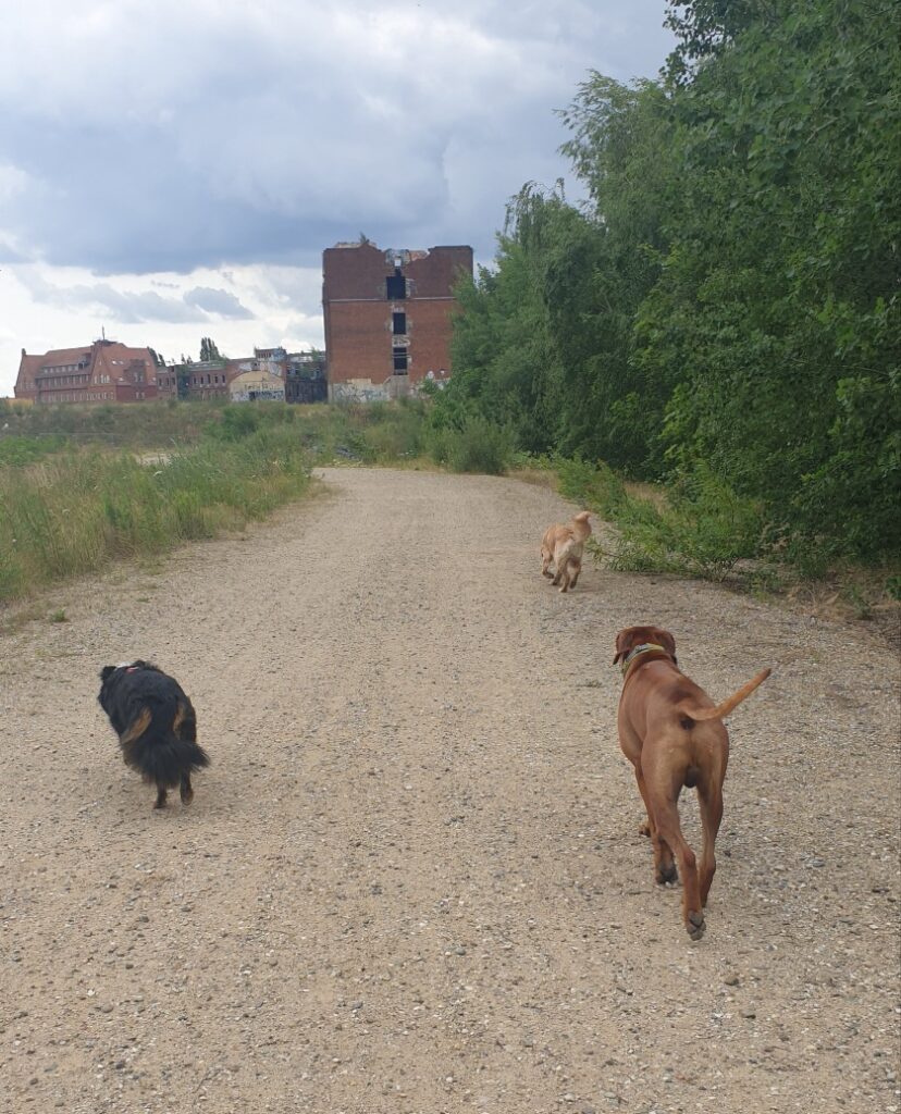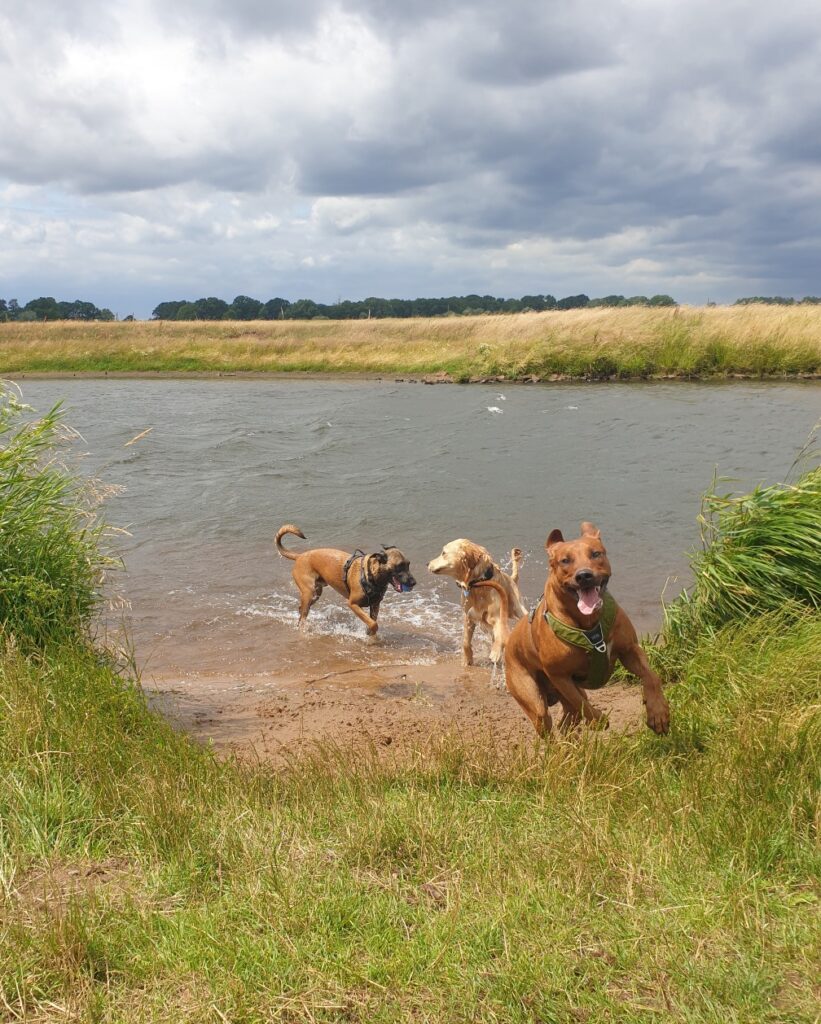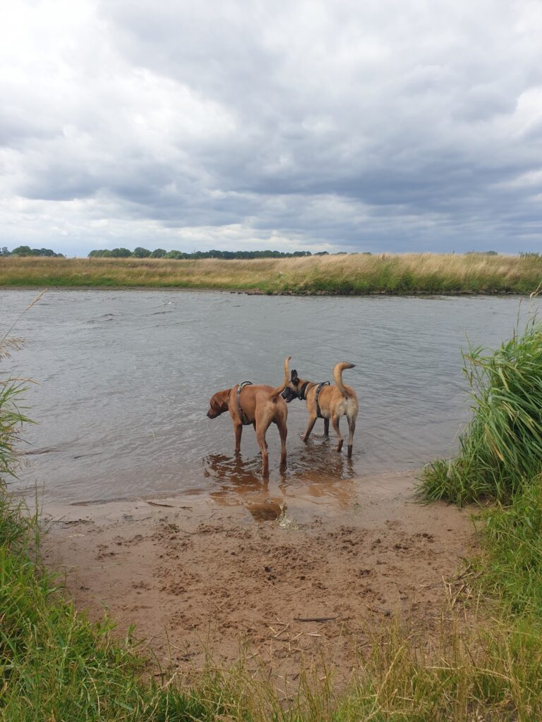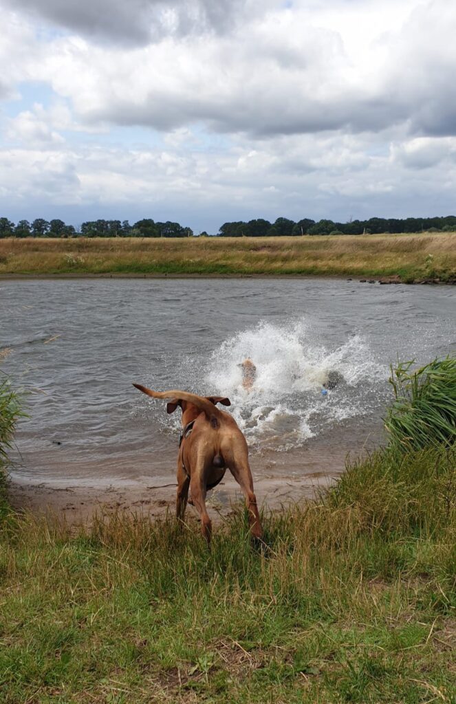 Mittwoch: Heute hat uns Lundis Frauchen spontan zu einen Ausflug mitgenommen und wir waren mit Lundi & Ed in Buchholz an der Aller :-) Das war mega toll dort, ganz viel Platz, niemand außer uns da und man konnte suuuuper da rumtoben!! In die Aller kann man da auch gehen, aber das habe ich mich noch nicht getraut ... ääääh nee, ich meine natürlich: Aber ich habe lieber Bademeister für Lundi und Ed gespielt. Einer muss den Job ja machen! Safety first! Oder wie seht ihr das?