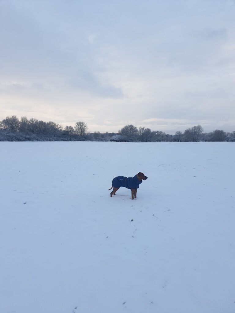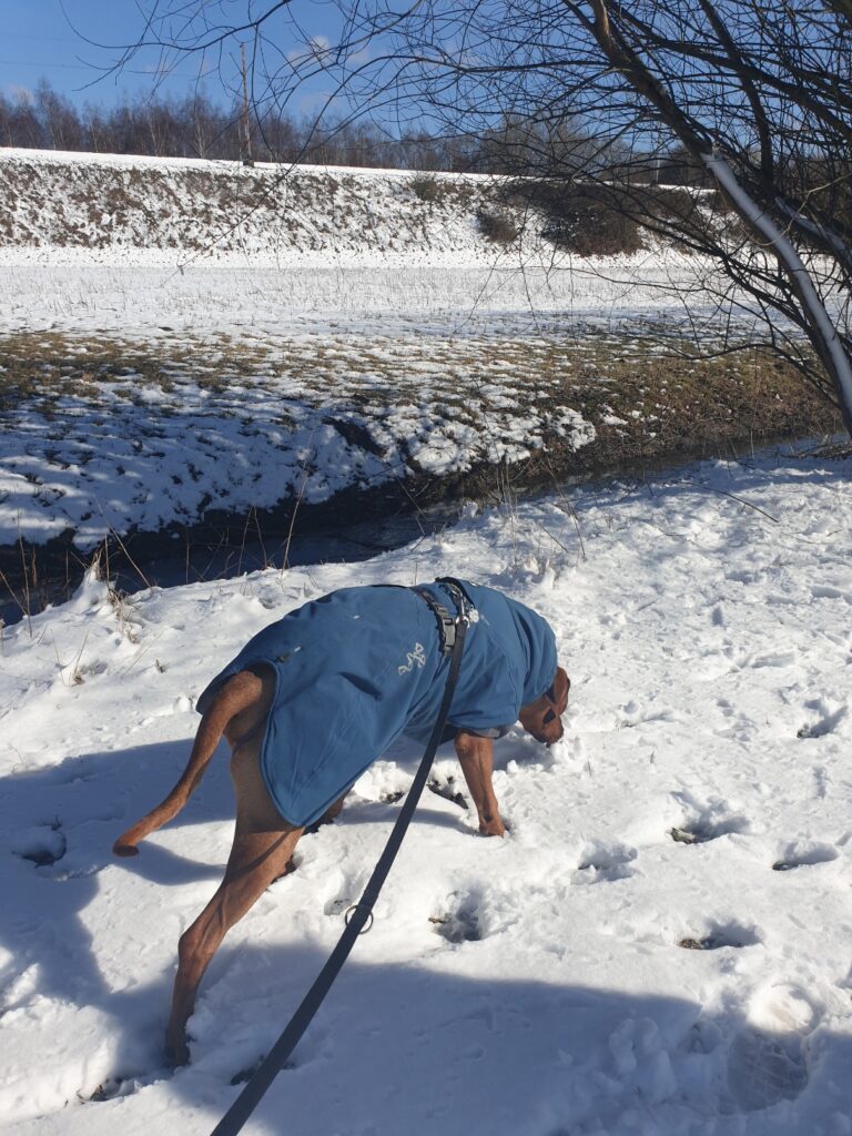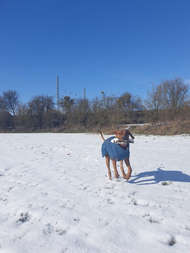Leute, letztes Wochenende gab es hier noch mal einen kurzen Wintereinbruch! Im März! Abends gab es schon einen Schneesturm und morgens war dann plötzlich alles weiß draußen! Da haben Frauchen & ich aber erstmal ganz schön blöd geschaut!